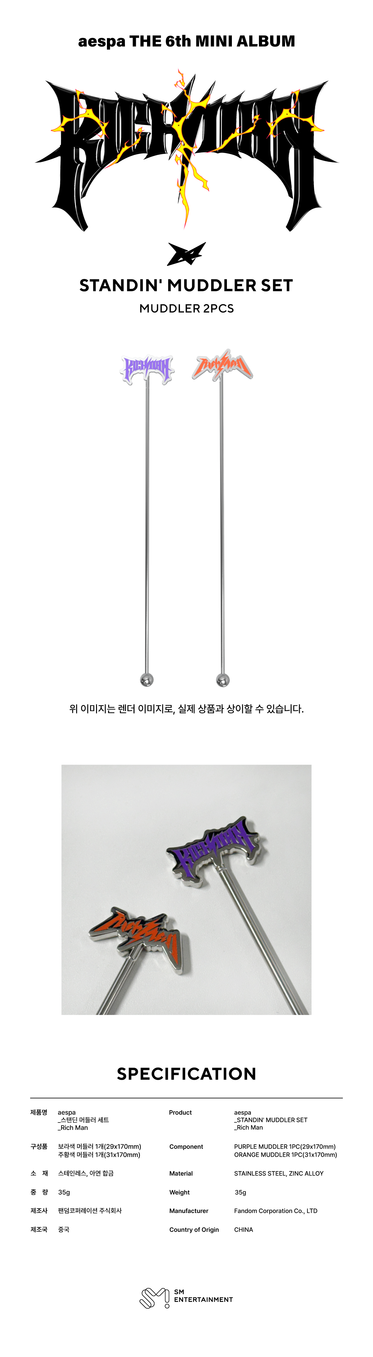 aespa - Rich Man - STANDIN' MUDDLER SET Ajouter à My Favorites aespa - Rich Man - STANDIN' MUDDLER SETOfficial GoodieNOTE : THIS PRODUCT WILL BE AVAILABLE FOR SPRING 2026Please place two SEPARATE orders so you can receive your other items.Release Date February 23rd 2026 in South KoreaSupport your favorite artists with TAIYOU En Précommande Until the 23/02/2026 Vendu et expédié par TAI YOU En savoir plus sur la livraison Quantity : Ajouter au panier Artist : aespaProduct : Rich Man - STANDIN' MUDDLER SETOfficial Release : 23/02/2026Details : - 1 Muddler set Edition : Korean Votre article a bien été ajouté au panier Quantity : × Share info about this item and send it via email Recommend this product to friend(s) ?Register your friend's lastname, firstname, email address and your message.They will have a direct access to the selected page. Lastname(s) and/or firstname(s) of your friend(s) E-mail of your friend(s) Your firstname and/or lastname Your E-mail Your accompanying message (up to 1000 symbols): Symbols left to type : Do not complete the box × Me prévenir lorsque le stock sera réapprovisionné Mon e-mail