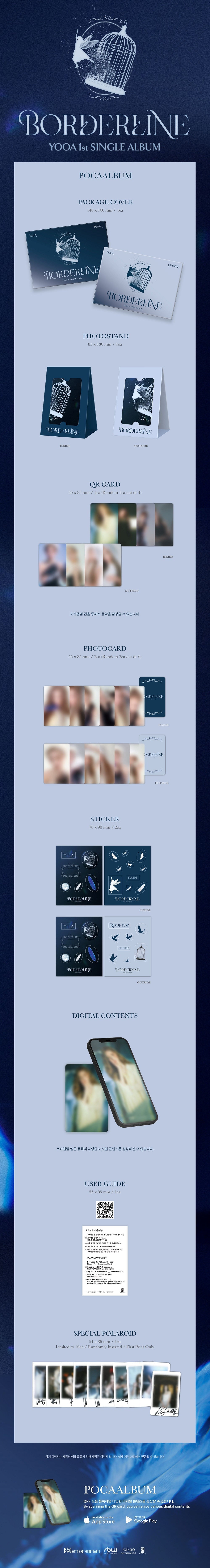 [POCA] YooA - Borderline - Single Album Vol.1 Ajouter à My Favorites [POCA] YooA - Borderline - Single Album Vol.1POCA VersionRelease Date March 15th 2024 in South KoreaSupport your favorite artists with TAIYOUKorean Charts HANTEO and GAON :Each album will be counted for the korean charts YooA Select... Stock disponible Vendu et expédié par TAI YOU En savoir plus sur la livraison Quantity : Ajouter au panier Artist : YooAProduct : Borderline - Single Album Vol.1Official Release : 15/03/2024Details : - 1 Photostand- 1 QR Card (random out of 4)- 1 Photocard (random out of 6)- 1 Stickers Sheet- 1 Digital ContentEdition : KoreanLanguage : KoreanTracklist :01. Rooftop02. Love Myself03. Shooting Star Votre article a bien été ajouté au panier Quantity : × Share info about this item and send it via email Recommend this product to friend(s) ?Register your friend's lastname, firstname, email address and your message.They will have a direct access to the selected page. Lastname(s) and/or firstname(s) of your friend(s) E-mail of your friend(s) Your firstname and/or lastname Your E-mail Your accompanying message (up to 1000 symbols): Symbols left to type : Do not complete the box × Me prévenir lorsque le stock sera réapprovisionné Mon e-mail