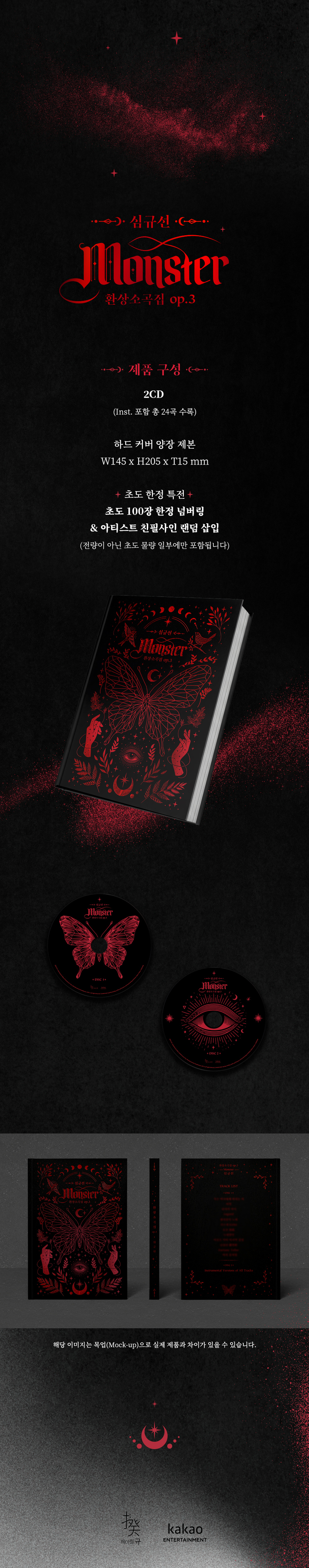 Lucia (Sim Gyu Seon) - Fantasy Pieces OP.3 : MONSTER - Album Vol.5 Ajouter à My Favorites Sim Gyu Seon - Fantasy Pieces OP.3 : MONSTER - Album Vol.5Phototbook versionRelease Date December 11th 2025 in South KoreaSupport your favorite artists with TAIYOUKorean Charts HANTEO and GAON :Each album will be counted for the korean charts En Précommande Until the 11/12/2025 Vendu et expédié par TAI YOU En savoir plus sur la livraison Quantity : Ajouter au panier Artist : Sim Gyu SeonProduct : Fantasy Pieces OP.3 : MONSTER - Album Vol.5Official Release : 11/12/2025Details :- 2 CD- 1 PhotobookEdition : KoreanLanguage : KoreanTracklist :Incoming... Votre article a bien été ajouté au panier Quantity : × Share info about this item and send it via email Recommend this product to friend(s) ?Register your friend's lastname, firstname, email address and your message.They will have a direct access to the selected page. Lastname(s) and/or firstname(s) of your friend(s) E-mail of your friend(s) Your firstname and/or lastname Your E-mail Your accompanying message (up to 1000 symbols): Symbols left to type : Do not complete the box × Me prévenir lorsque le stock sera réapprovisionné Mon e-mail