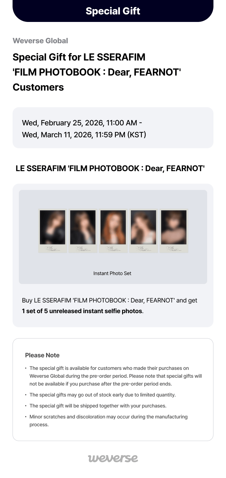 [BONUS WV] LE SSERAFIM - FILM PHOTOBOOK : Dear, FEARNOT