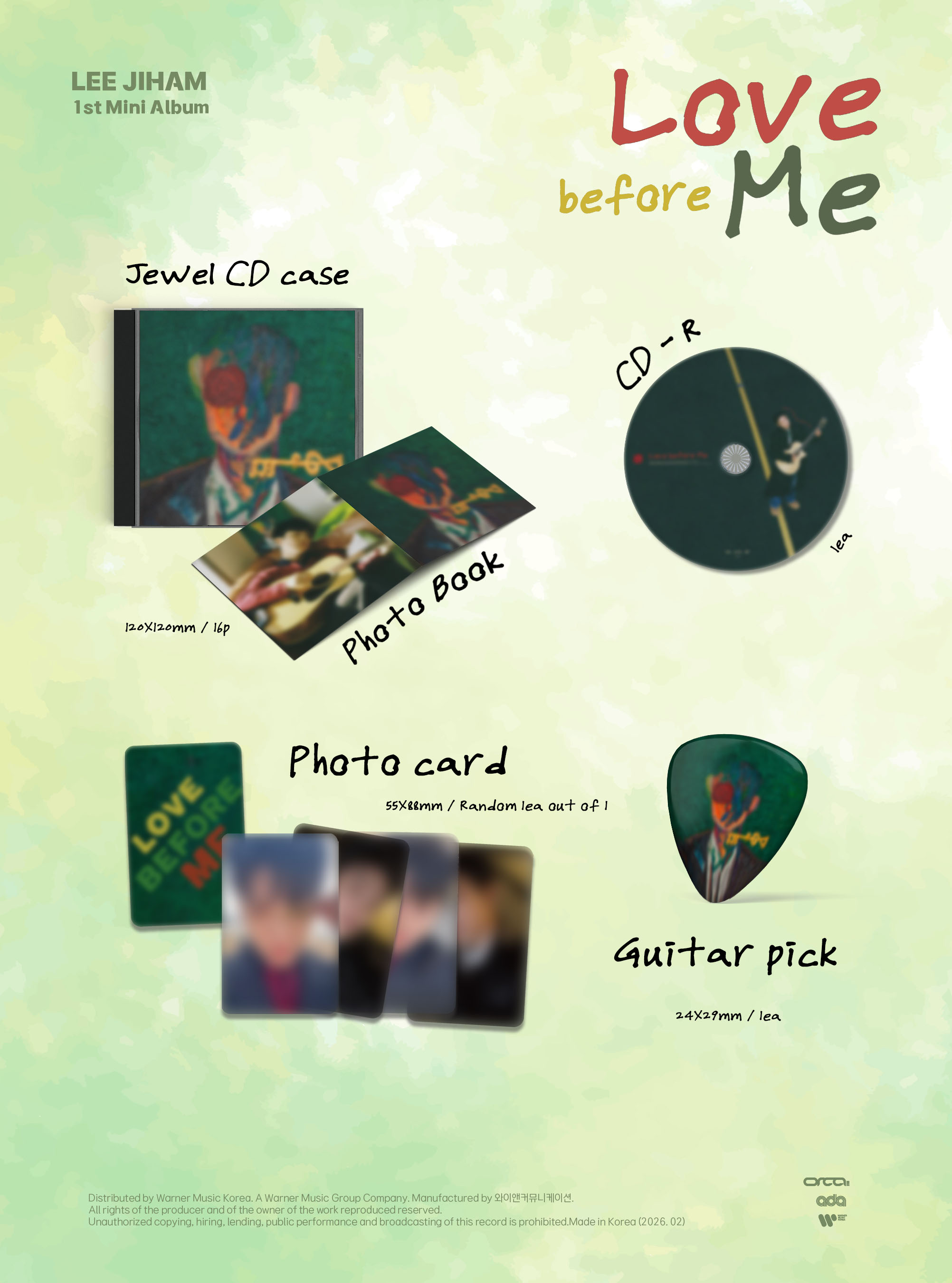 LEE JIHAM (A.C.E) - Love before Me - Mini Album Vol.1 Ajouter à My Favorites LEE JIHAM (A.C.E) - Love before Me - Mini Album Vol.1JewelSortie le 13 Février 2026 en Corée du SudVous soutenez vos artistes préférés avec TAIYOUCharts coréens HANTEO et GAON : Chaque album est automatiquement comptabilisé pour les classements coréens#TMP En Précommande Jusqu'au 12/02/2026 Vendu et expédié par TAI YOU En savoir plus sur la livraison Quantité : Ajouter au panier Artiste : LEE JIHAM (A.C.E)Produit : Love before Me - Mini Album Vol.1Sortie Officielle : 13/02/2026Details :- 1 CD- 1 Livret (16 pages)- 1 Mediator- 1 Photocarte (aléatoire parmi 4 modèles)Edition : CoréenneLangue : CoréenneTracklist :à venir... Votre article a bien été ajouté au panier Quantité : × Partager et faites découvrir cet article par mail Vous souhaitez faire connaître ce produit à vos ami(e)s ?Inscrivez simplement leurs noms, prénoms, e-mails et votre message d'accompagnement.Ils pourront ainsi venir directement sur la page que vous avez sélectionnée. Nom(s) et/ou prénom(s) de vos ami(e)s E-mail de vos ami(e)s Votre nom et/ou prénom Votre E-mail Votre message d'accompagnement (1000 caractères maximum) : Nombre de caractères restants : Ne remplissez pas cette case × Me prévenir lorsque le stock sera réapprovisionné Mon e-mail