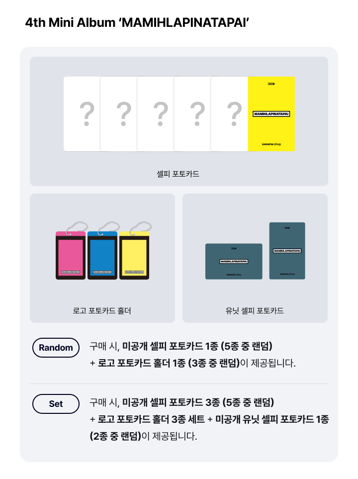 - 1 Photocard selfie unit (aléatoire parmi 2 modèles)